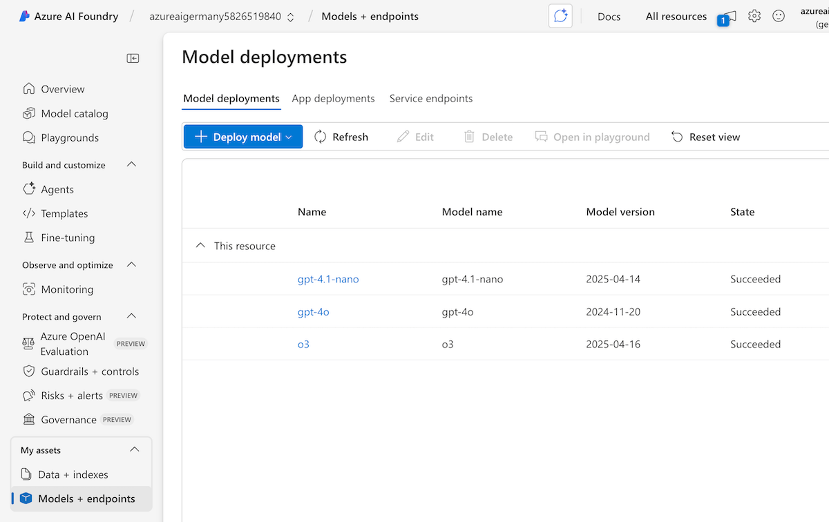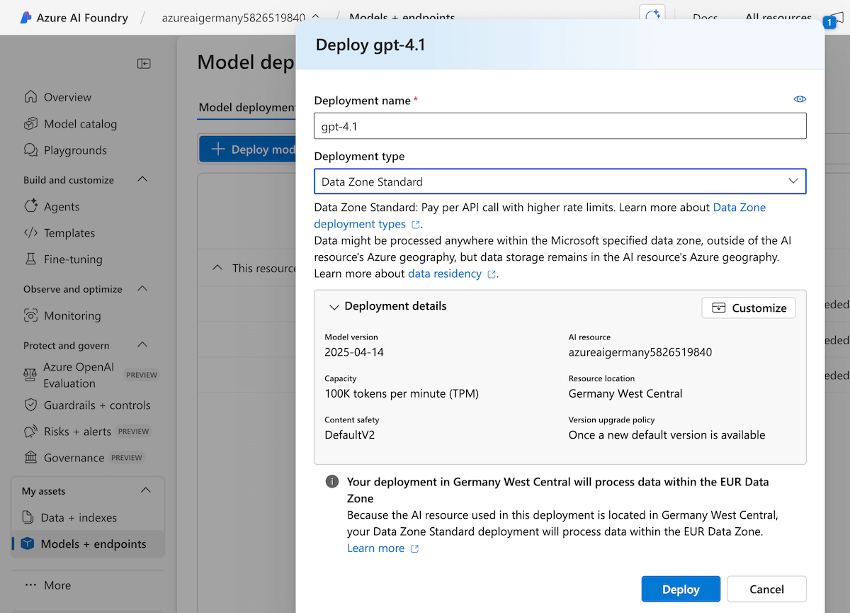 gpt-4.1) - Deployment type: Data Zone Standard (recommended for GDPR compliance)