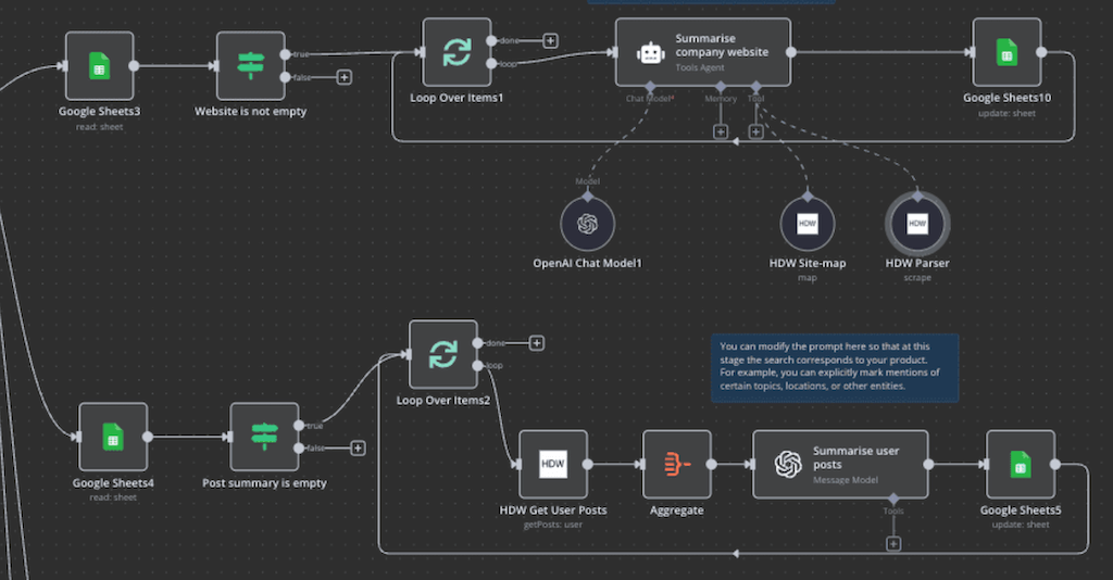 This unfortunately paid workflow template automates candidate selection from LinkedIn data using Google Search and APIs to optimize and accelerate the process. Use the AI-driven solution to find relevant candidates for open positions on LinkedIn and other platforms. The solution automatically selects suitable profiles and uses the advanced GPT model to assess suitability based on skills, experience, and education. The workflow uses Google Sheets and an automated process that saves valuable time.